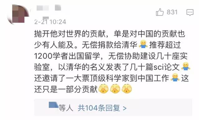 杨振宁邀请、安排林家翘、聂华桐、姚期智、张首晟等多位世界顶级科学家到中国工作,其中做到中科院外籍院士的就有7人。