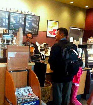 人们认为他接地气——他背着双肩包在西雅图机场买咖啡。