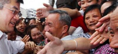 骆家辉回乡祭祖与乡亲握手