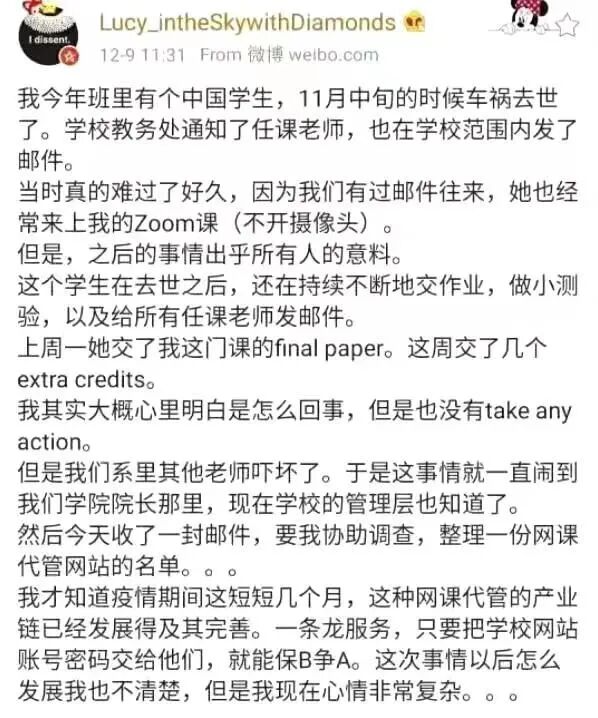 在微博上,一位网友回应,这种网课代管一般只有中国老师能发现。