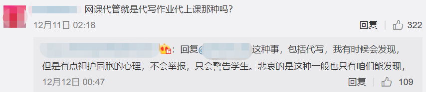 但人们比较常听到的还是代写论文、代刷网课这类,全程网课代管的形式还未曾大范围地引发关注。