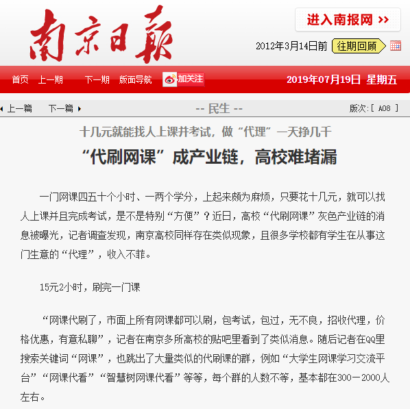 由于网课没有老师监考,即使考试测验,学生只要在限制时间内完成即可,不少学生便抱了侥幸心理,也催生出了商机。
