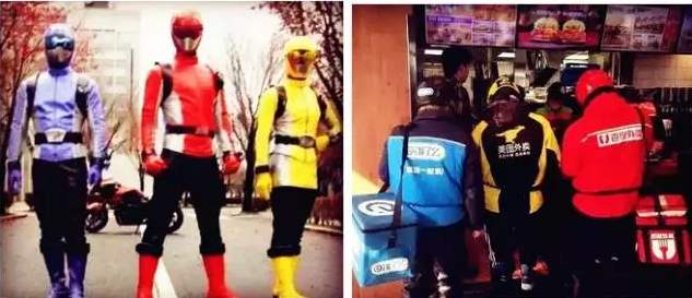 因为不少的餐馆们其实都有自己的外卖队伍,他们自成一派。