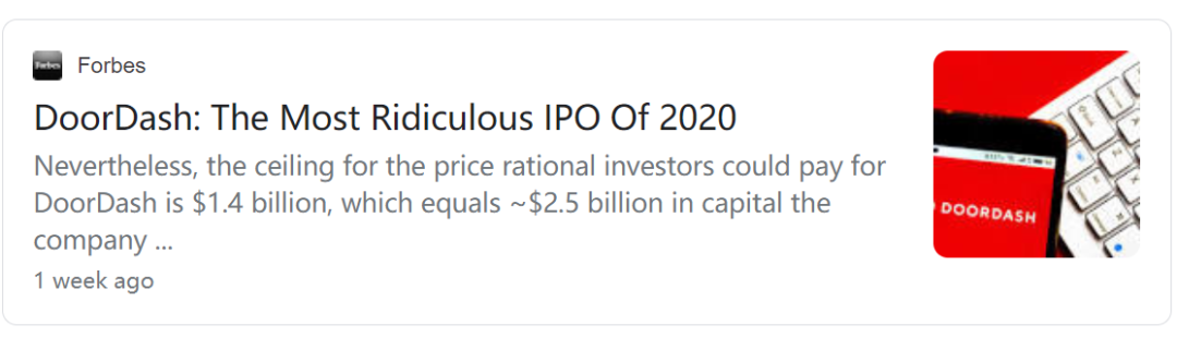 福布斯甚至有篇文章,直接喷 DoorDash 是 2020 年最离谱的 IPO。