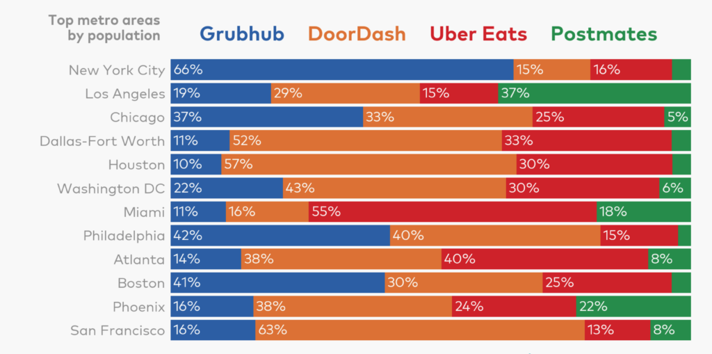 但硬要如果按总的市场份额来算的话,DoorDash 开始最大的敌人应该是 Grubhub。
