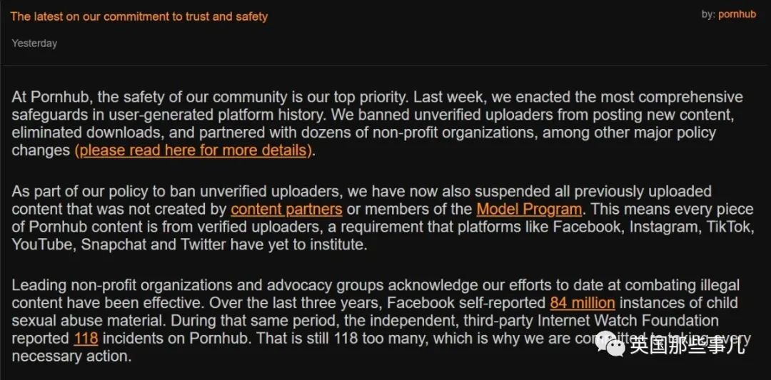 同时,Pornhub还暂停了所有未认证的账号上传视频,只有经过认证的内容方上传的视频才能被观看。