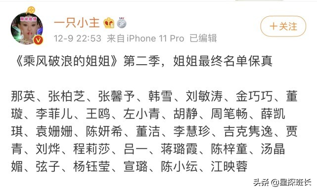 从上图名单中我们可以看到,《浪姐》第二季的整个阵容,丝毫不输于第一季!