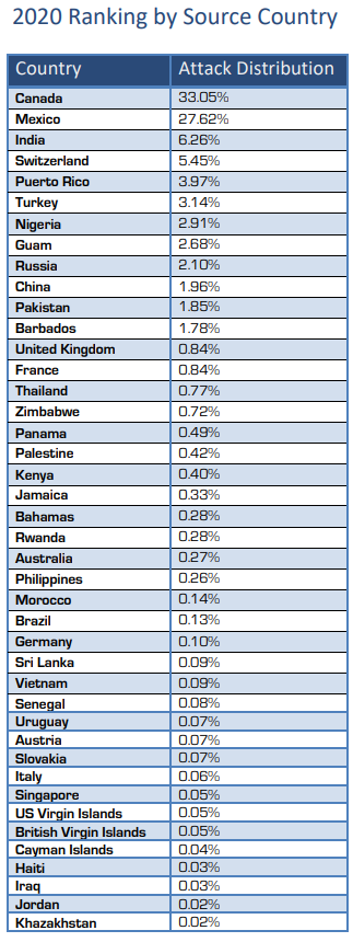 图为Exigent Media公司的报告:2020年“攻击”美国的排名