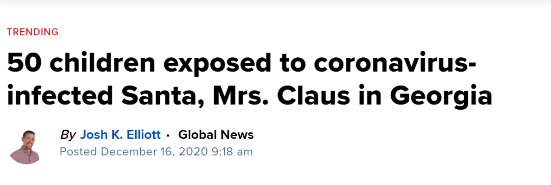 祸不单行的是,据Global News 12月16日报道,美国佐治亚州也出现了“圣诞老人”相关的超级传播案例。