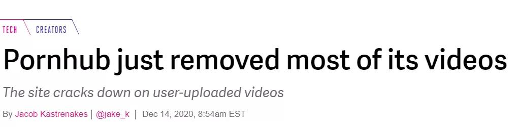 很快这篇文章产生了连锁反应,在文章发表的第二天, Pornhub 就禁止了所有未认证的用户上传和下载视频。