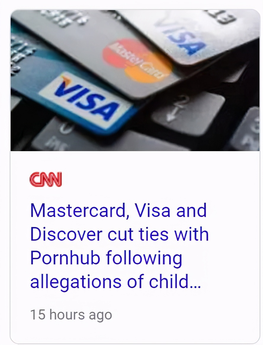 除了广告收入之外,用户的充值可以说是平台最大的收入来源了。在舆论的压力之下,文章发出的第四天, Paypal 、万事达和 VISA 也决定停止为 Pornhub 提供支付服务。