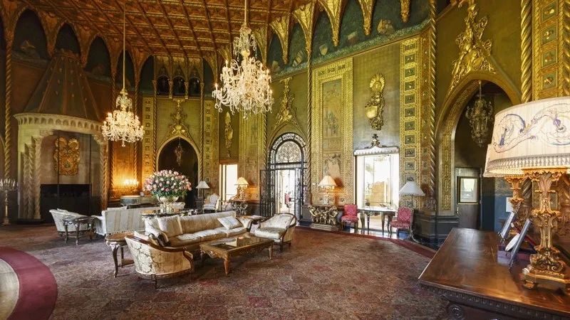 买下这座庄园以后,特朗普出资对其进行了重新装修,把原来的118个房间扩充到了126个。仔细算起来,装修后这里有58间卧室、33间浴室、一个8.8米长的大理石餐桌、12个壁炉和3个防空洞。另外,室外还有一个网球场、一个游泳池,还有一个1900平方米的舞厅。