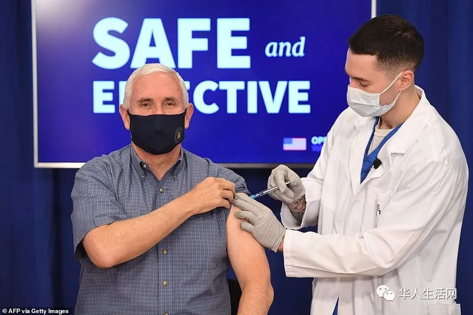 副总统迈克‧彭斯(Mike Pence)周五(12月18日)公开接种新推出的新冠病毒疫苗,一同接种的还有他的妻子和美国首席医官。
