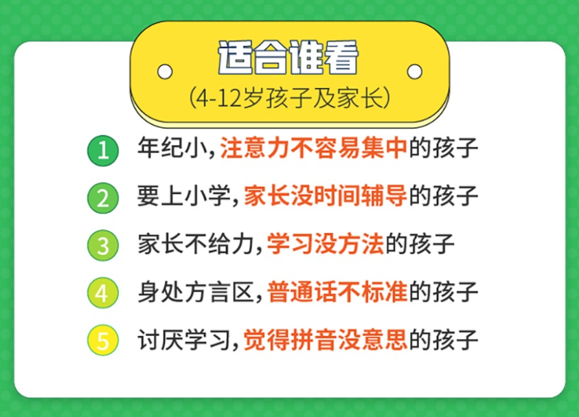 不靠死记硬背、不需要反复机械操作,通过图片、动画将抽象的拼音字母和具体生动的形象建立联系,利用顺口溜、儿歌、绕口令、谜语….