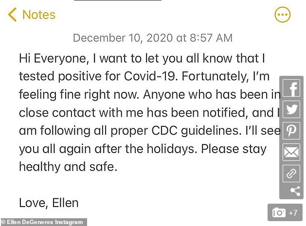 艾伦在社交网络上发出的声明强调了很多次她很好,感觉很棒,在遵守隔离要求接受治疗。