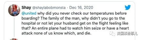“美联航,为什么你们在登机前不检查我们的体温?那位男子的家人,为什么你们不去医院,为什么他病成这样了,还要让他坐飞机?