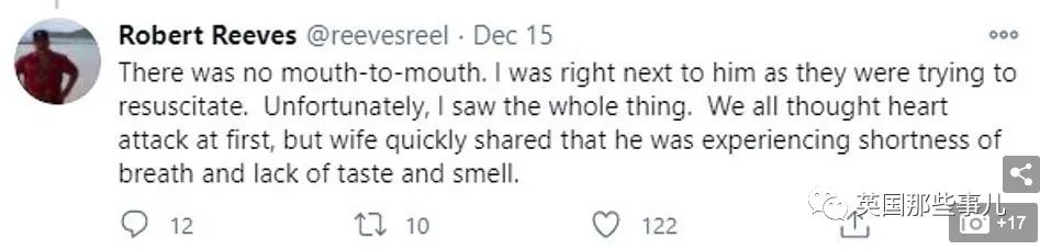 然而,在被抢救过程中,有人听到他妻子告诉抢救人员,男子有新冠症状,其中包括味觉和嗅觉丧失,呼吸困难。这些症状已经持续1周。