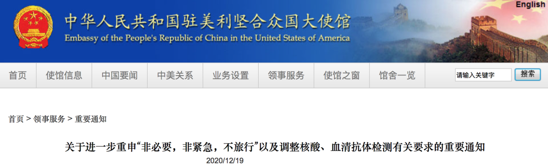 北京时间12月19日,中国驻美国大使馆12月19日发布公告指出: