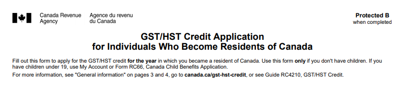 5. RC 151 Schedule 表格“适用于成为加拿大居民的个人GST/HST额度申请”(GST/HST Credit Application for Individuals Who Become Residents of Canada)