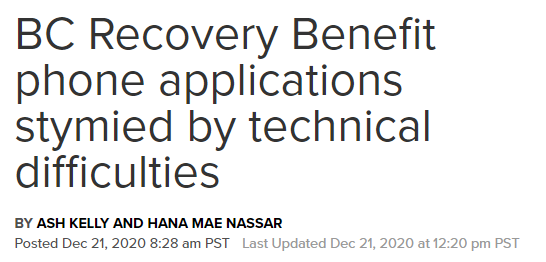 说起来,12月21日还是BC省府开通BC省恢复福利金电话服务的第一天。据City News 1130报道,继上次网上申请通道被挤爆事件之后,省府又翻车了….