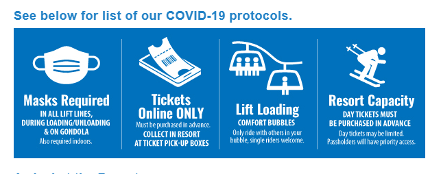 塞普雷斯山度假村为保证安全距离,减少了接待人数,而且需要佩戴口罩,建议做好要在自己车上用餐、取暖以及存放物品的准备。另外这家也是为数不多开放夜间滑雪的场所。