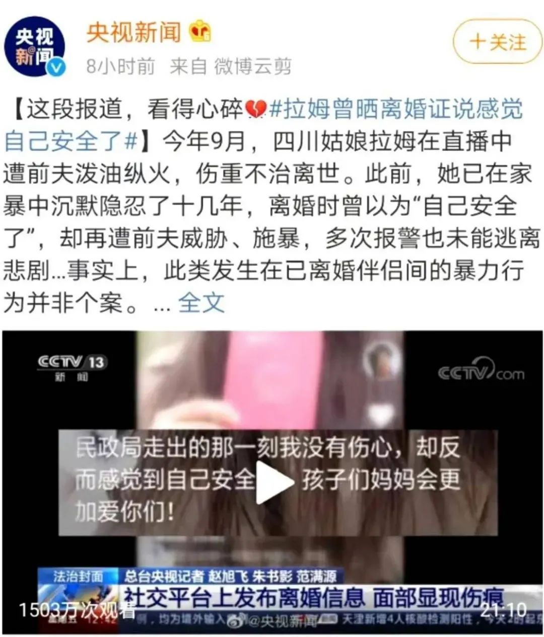 所以,家暴从来都不只是个民事问题。可能也只有当局拿出缉毒和打击人口拐卖的力度,家暴才现象会渐渐消失吧。