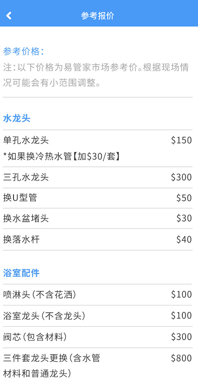 6) 在易管家APP和微信公众号发单,您可获得这项服务的市场参考报价。