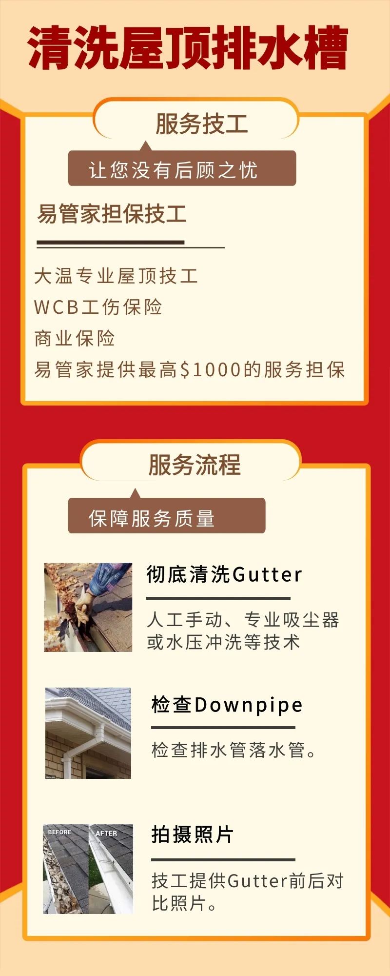 据加拿大环境部预测,未来几周温哥华又开启“雨哥华”模式,连连降雨不仅会让道路积水,也会让住宅屋顶排水槽“压力山大”。更何况加拿大还被称为枫叶之国,住宅的房前屋后经常会有一些枫树这样的大型植被,秋季树叶和树枝难免会飘落到屋顶。落叶和风雨带来的泥沙沉积下来,逐渐开始堵塞排水槽,导致雨水无法正常排出,时间再长就会渗到木头里,引起房屋表面和内部木材的腐烂、虫蛀,再严重的甚至可能影响地基,致使墙面和地下室漏水。
