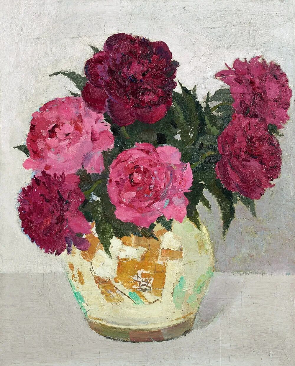 吴冠中牡丹花木板