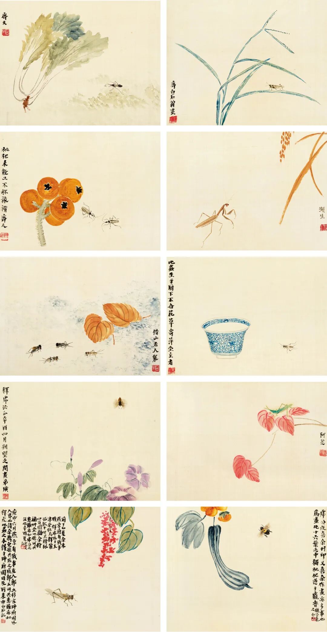 齐白石 致杨度工笔花虫册镜心