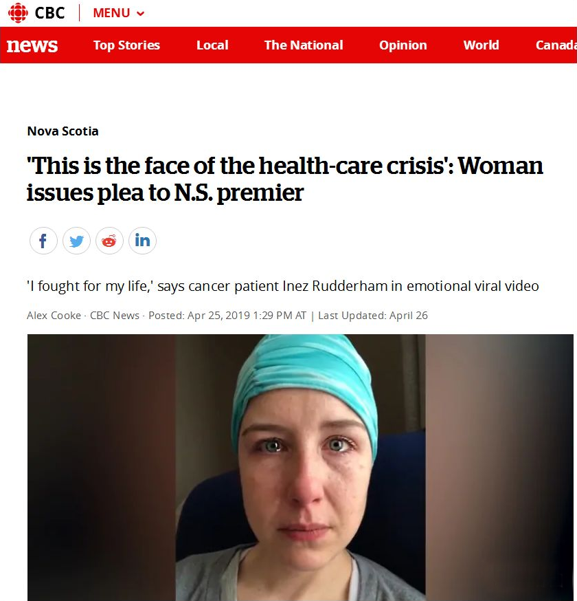 2019年,一条视频在加拿大的社交媒体上走红,33岁的Marilyn Inez在该视频中哭诉,因为预约不上医生,自己的癌症被拖了两年才被诊断出来