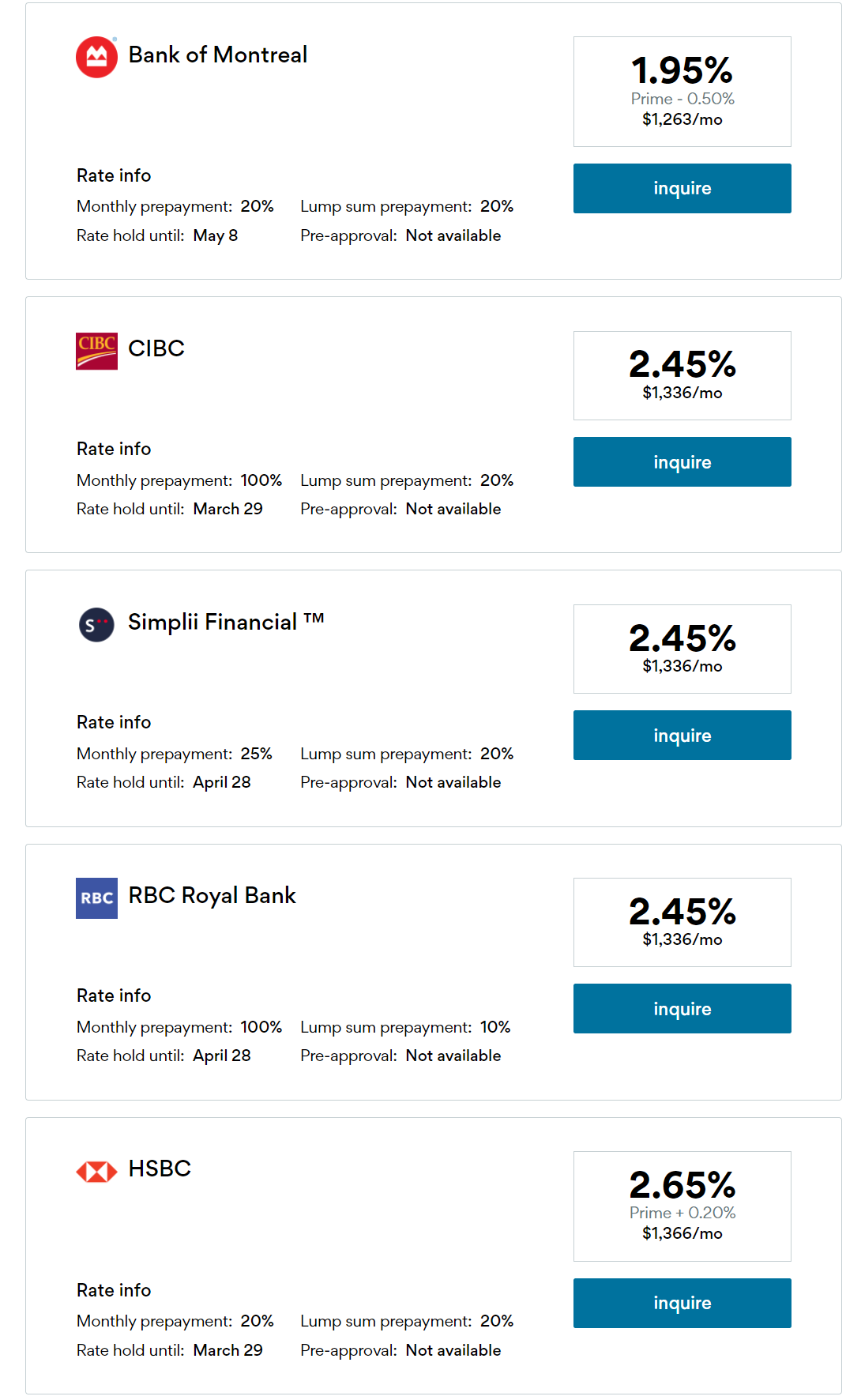 (Ratehub 2020年12月29日查到的固定利率贷款利率)