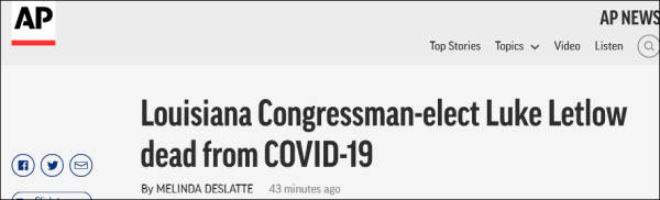 【文/观察者网 王恺雯】据美联社、美国有线电视新闻网(CNN)等多家美媒报道,当地时间12月29日晚,共和党籍路易斯安那州当选国会众议员卢克·莱特洛(Luke Letlow)因新冠肺炎并发症去世,终年41岁。