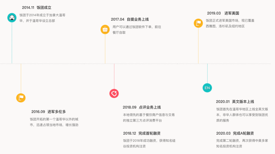 饭团是一家北美互联网生活服务公司,主要业务包括饭团外卖、饭团点评、饭团跑腿,结合中式优质服务与北美先进大数据技术,以互联网思维推动生活服务行业变革。目前,饭团已覆盖温哥华、多伦多、卡尔加里、蒙特利尔,西雅图,洛杉矶,纽约等加拿大及美国主要城市,为海外华人乃至所有海外消费者提供更加便捷、高效、智能的生活服务。