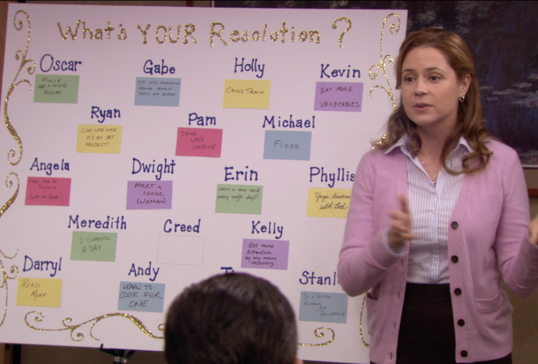 在《办公室》第七季的一集中,这群办公室职员齐聚会议室,围绕潘贴在白板上激励大家的新年方案开展讨论。大多数人都有着宏伟的目标,但科瑞德…