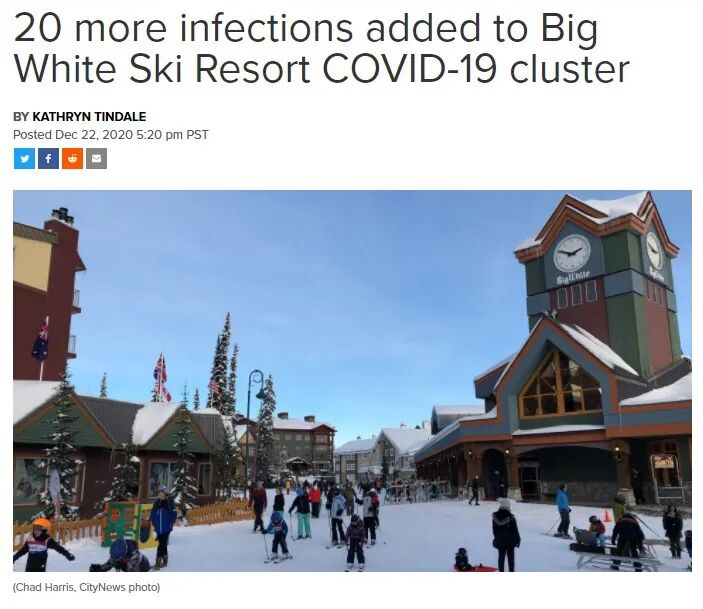 针对基隆那(Kelowna)滑雪场Big White Ski Resort发生的群聚感染,加拿大皇家骑警昨日发表了一份声明,表示新年前夕警察会在滑雪场进行巡逻,以确保民众在假期中遵守公共卫生命令。