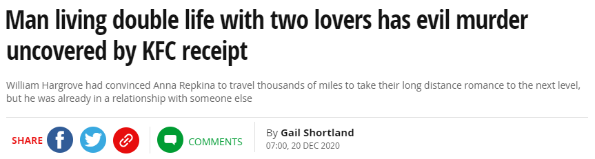 尸体旁边遗留的KFC小票暴露了真凶,后来警方在William的车上发现了犯罪强支,上面还有他的指纹。