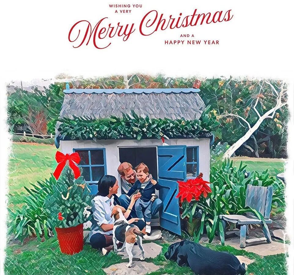 现在一家三口生活在加州蒙特西托价值1500万美元的豪宅里。这张明信片就是在豪宅的花园中,由梅根的母亲拍摄。明信片是由梅根赞助的总部位于伦敦的动物慈善机构帮助发布的。