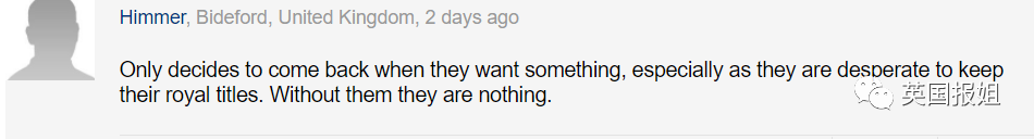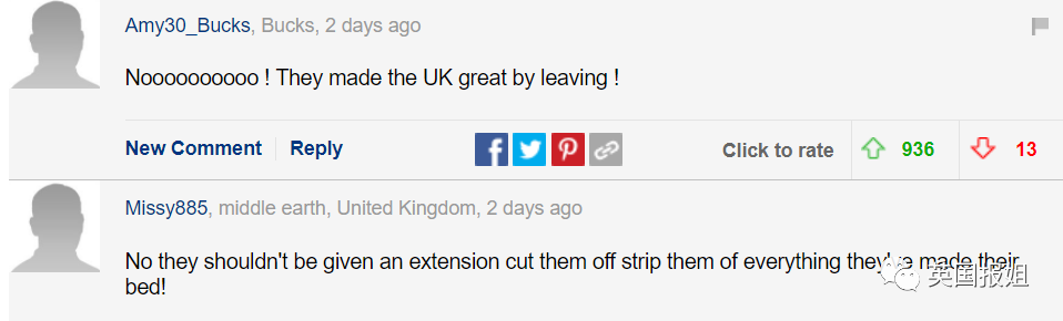 尽管如此英国网友还是对他俩有意见。很多媒体下面的评论都是一水的“不要回来!”“不给延期!”