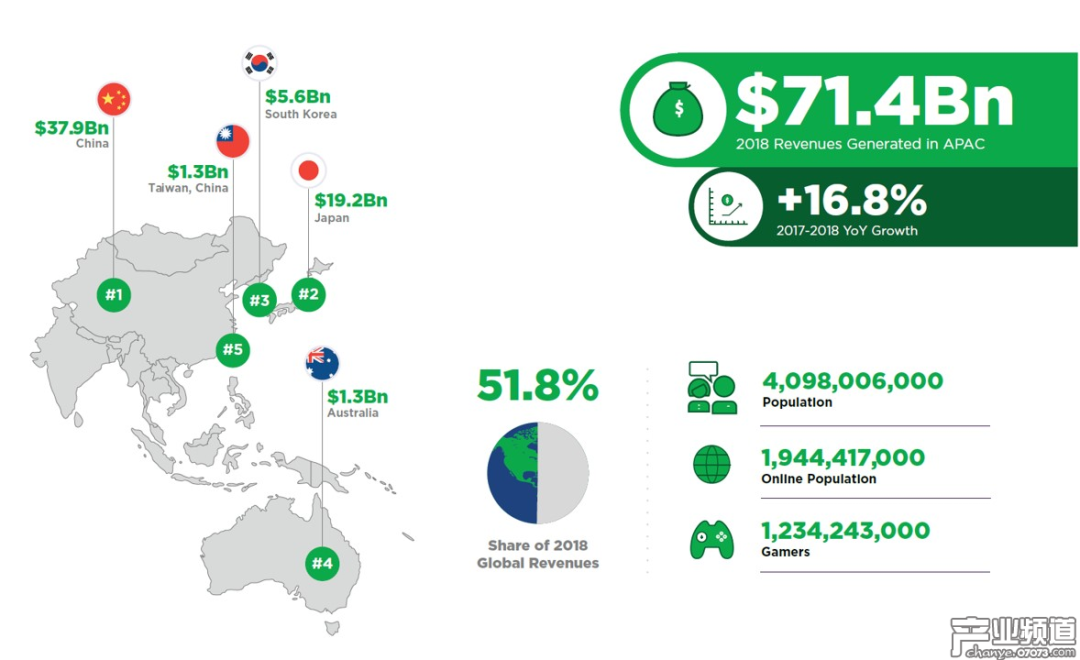 2018年,中国占全球游戏总收入的28%,是全球最大的单一市场