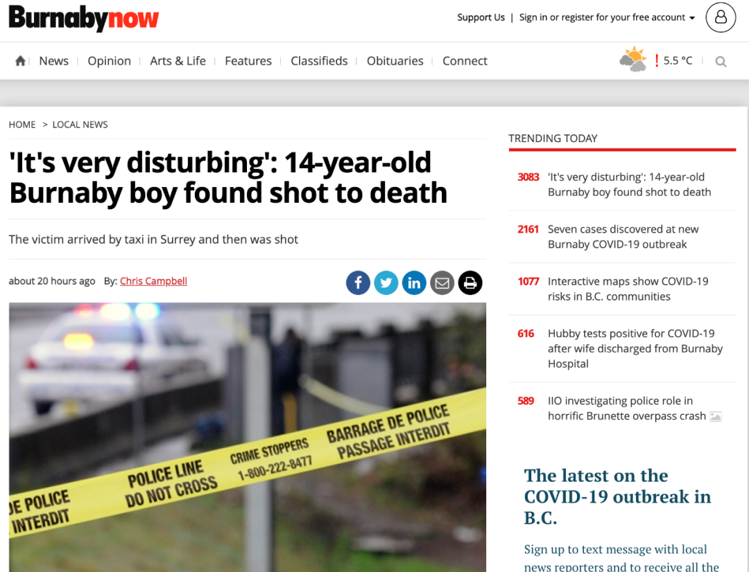 2020年12月29日,才19岁的青年迪希西(Harman Singh Dhesi)在137A Street和90 Avenue的惠利区(Whalley)遭到枪击,被紧急送医后还是没能挽回生命。