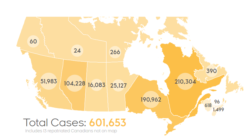 据加拿大电视台(CTV)报道,截止到加拿大东部时间1月3日15:30,根据加拿大各省公布的新冠疫情统计数据,加拿大新冠确诊病例已经突破60万例,达到601653例。