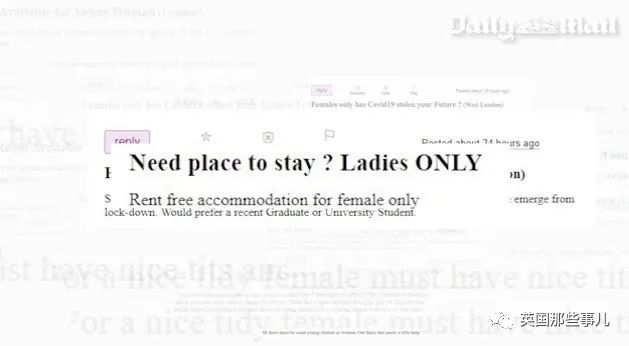 从3月份疫情开始到9月份,英国有约3万名女租客被房东提议“肉偿房租”。