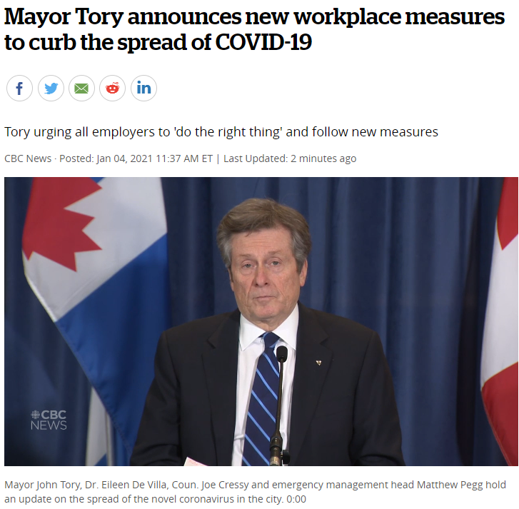 多伦多市长周一紧急开会,首次公布工作场所爆发的数据,在大流行期间报告的302起爆发疫情的工作场所中,将近一半(132)属于由办公室、仓库、运输和分销设施、制造设施和建筑工地组成的广泛类别。