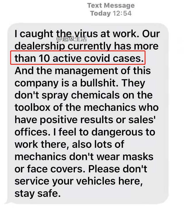 不阻止新冠患者继续上班还不算完,大概是生怕这样的消息会妨碍生意,这家车行的老板还禁止消息向外传播,更不给公司进行消毒!
