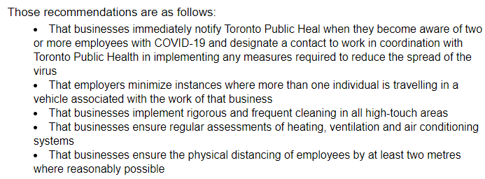 多伦多公共卫生局发布了针对在全省范围内持续运营的基本工作场所的一系列新措施,包括: