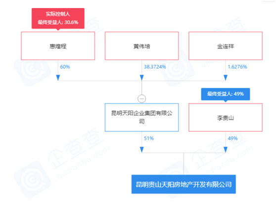 早在2012年,李贵山就注资2940万元投资房企贵山天阳,占股46%。该公司另一股东是昆明天阳企业集团有限公司,占股51%。