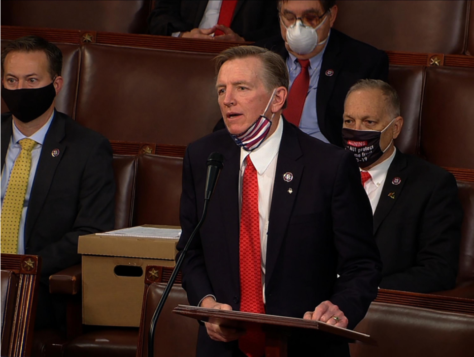 说起来也是巧,阿拉巴州(Alabama)和阿拉斯加(Alaska)的选举人票念完,大家没有异议,过了,可偏偏第三个就是亚利桑那州(Arizona)。于是,在共和党众议员Paul Gosar的牵头下,其他几名众议员和参议院也纷纷表示反对亚利桑那州的选举人票。