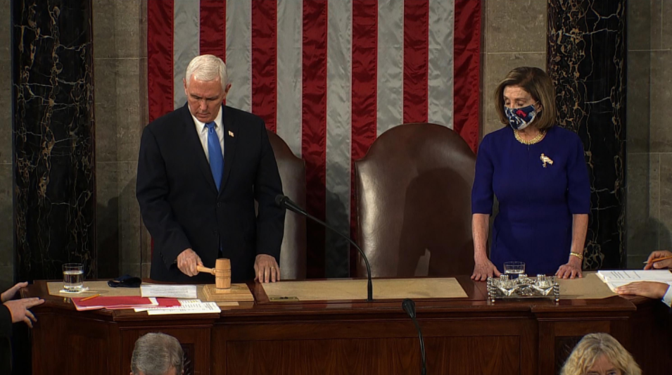 美东时间1月6日差不多中午12点,美国国会正式开始清点选举人票。点票的流程是这样的,两名众议员和两名参议员被指派为唱票人(teller),他们作用就是按照字母表顺序、从A开始,念各个州的选举人票数。
