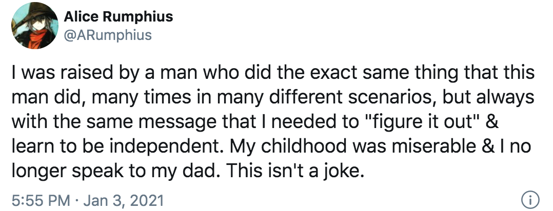“这事如果放在母亲身上,肯定还没等她发完三条推特就要被当成虐童举报了”